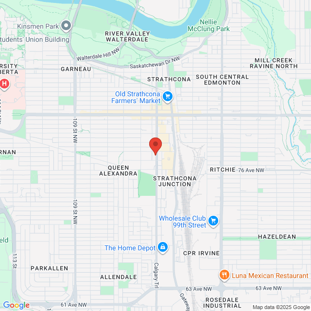We are located on the 2nd floor of the Scona 104 building. There is a free parking lot beside the building and free parking in front of the building along Calgary Trail. From the parking lot, go to the front door that is labelled '2nd floor' and go up a set of stairs, down the hallway past the bathrooms on your left, down two more stairs and then turn right. You will enter a communal seating area with doors labelled with unit numbers. Just around the corner from this communal seating area will be 202D, this is what you're looking for. There will be better signage as it gets installed, and please text me if you get lost (780-554-6688)